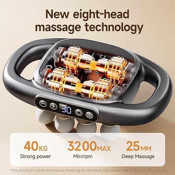 - 8-HEAD MASSAGE GUN: Our muscle massage gun integrates a high-powered motor, 25mm high-intensity massage, reaching deep muscle layers, breaking stiffness, relieving soreness, and completely releasing stress Ideal for accelerating recovery after workouts or providing daily stress relief, it ensures optimal performance with each session.