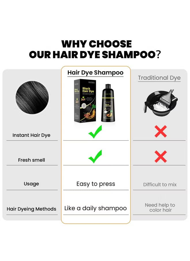 Achieve a stunning natural black hair color effortlessly with our Natural Black Dyeing Shampoo! 🌟 Formulated with natural extracts, this shampoo effectively dyes your hair in minutes, giving you a charming and natural look. Simply apply to dry hair from roots to tips, wait 10-15 minutes, and rinse for beautiful results! ✨